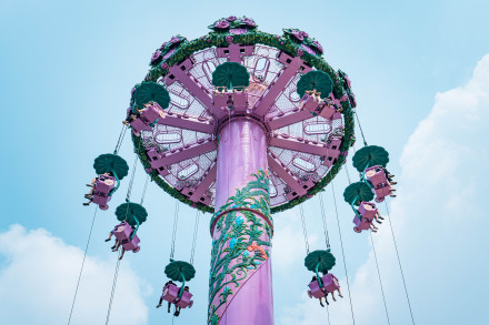 夢(mèng)幻飛塔,一種新穎的飛行塔類游樂(lè)設(shè)備,擁有10個(gè)座艙,在離心力的作用下繞立柱飛旋的同時(shí)單獨(dú)上下升降,帶來(lái)無(wú)窮樂(lè)趣。